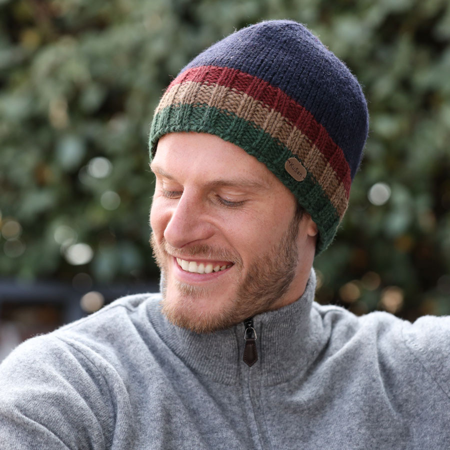 Stay warm and stylish with the Oliver navy beanie. Featuring vibrant stripes in red, mustard yellow, and green, it brings a lively touch to your winter outfits. Crafted from soft wool and lined with cozy fleece, it ensures comfort and warmth throughout the season. Its clean, cuffless design makes it an easy match for any look.