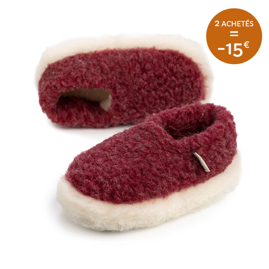 These two-tone dark red and ecru slippers have been made from warm, thick wool that will keep your feet warm all winter long.