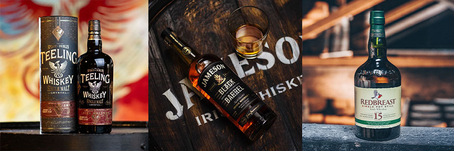 À découvrir au Comptoir Irlandais : des whiskey irlandais emblématique comme Jameson, Teeling, Redbreast et bien d'autres encore.