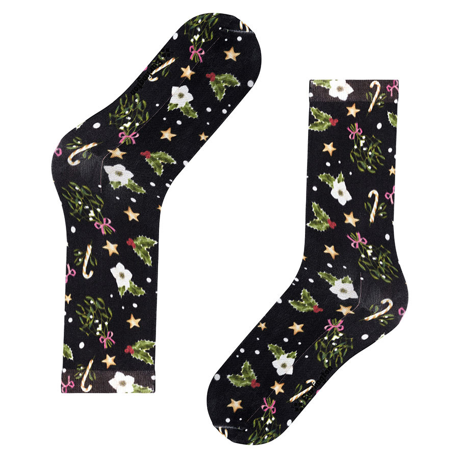 Apportez une touche festive à vos tenues avec ces chaussettes hautes en coton signées Burlington. Confortables et originales, elles se parent de motifs de Noël mêlant fleurs, cannes à sucre et sapins, parfaites pour célébrer la saison avec style.