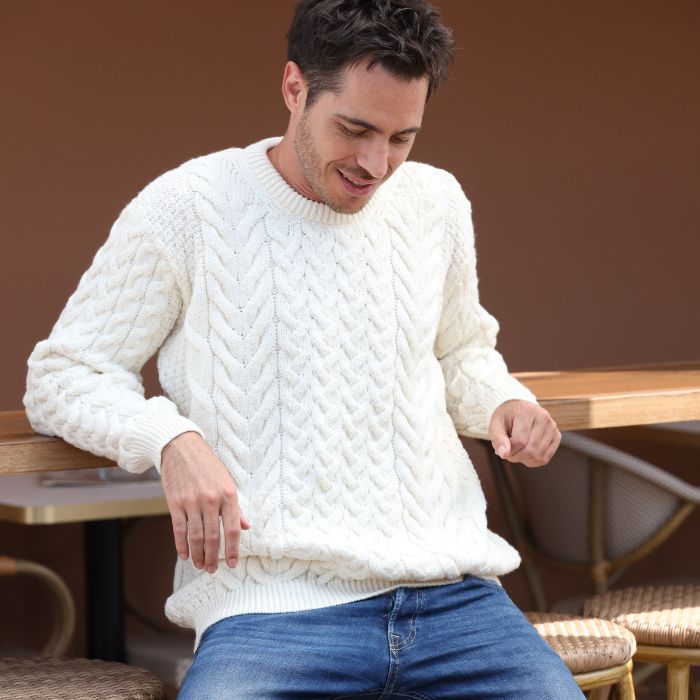Sélectionnant la laine de la meilleure qualité, Aran Woolen Mills tricote des pulls irlandais aux points traditionnels, chaque point de tricot ayant sa propre signification, héritage historique des clans irlandais. Les points de tricot reflètent la vie des îliens et de leurs familles, et étaient transmis d’une génération à l’autre.