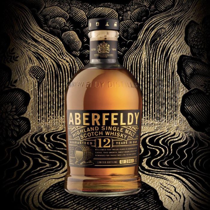Aberfeldy a été fondée en 1898 par la famille Dewar, et se situe dans la région des Highlands. La distillerie utilise l'eau de la Pitilie Burn qui est réputée pour ses dépôts d'or alluvial.