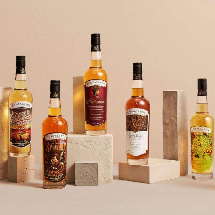 Fondée en 2000 par John Glaser, ancien de la maison Johnnie Walker, Compass Box a révolutionné le monde du whisky écossais. Son objectif : redonner ses lettres de noblesse à l’assemblage en alliant créativité, innovation et transparence. Basée à Londres, la marque collabore avec plusieurs distilleries d’Écosse pour composer des whiskies d’une richesse aromatique inédite.