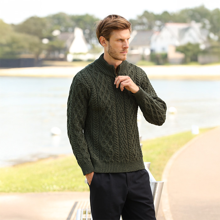 Les créations Inis Craft sont confectionnées à partir de laine mérinos, d’alpaga ou de pure laine vierge, offrant chaleur, confort et durabilité. Les motifs Aran, torsades et mailles épaisses racontent l’histoire des pêcheurs irlandais et symbolisent la force, la chance et la protection. Plus qu’un simple vêtement, chaque modèle est une ode à la culture et à l’identité irlandaise.