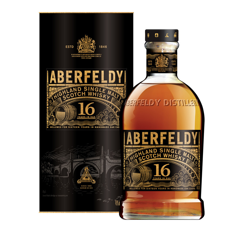 Aberfeldy a été fondée en 1898 par la famille Dewar, et se situe dans la région des Highlands. La distillerie utilise l'eau de la Pitilie Burn qui est réputée pour ses dépôts d'or alluvial.